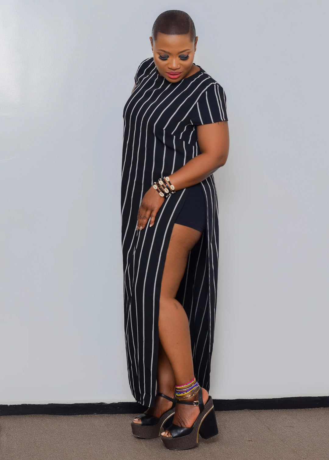 VERTICAL STRIPPED DRESS WAIST HIGH SLITS