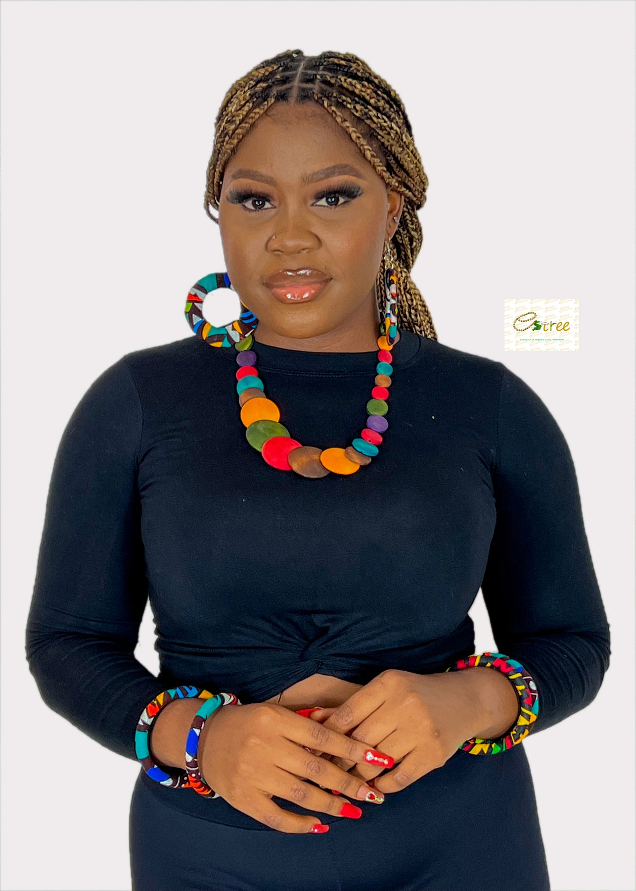 Multi Color Wooden Beaded Bib Necklace For Women, Short Strand African Necklace For Women Fashion Jewelry Costume: detailed hotography of real item from Estreeafrocentric. what you see is what you get.
